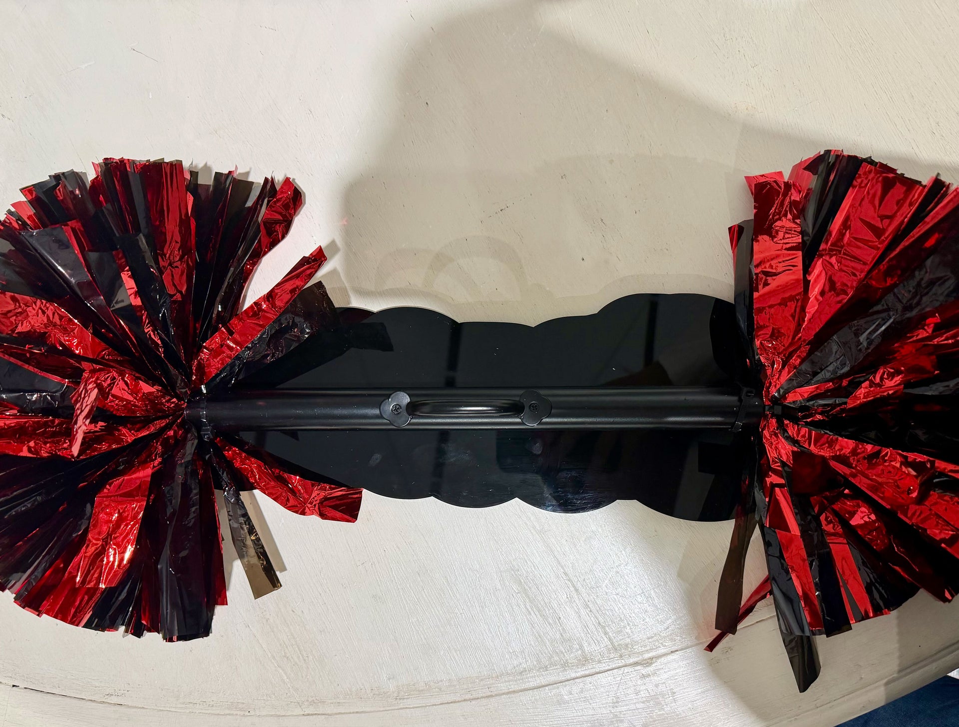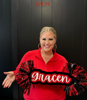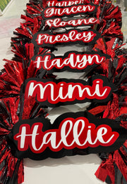 Bring the spirit and make it personal! Our Personalized Pom Cheer Stick features a bold, acrylic layered name design accented with pom fringe on both ends for maximum cheer impact. Lightweight yet eye-catching, this custom cheer stick is perfect for games, pep rallies, photos, and senior nights. Customize with any name to show off school pride and cheer loud in style.