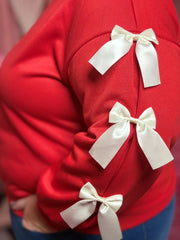 Sweet, feminine, and effortlessly stylish — our Monroe Bow Sweatshirt brings the perfect pop of charm to your everyday look. This bold  pullover features three elegant satin bows cascading down each sleeve, adding the prettiest touch of movement and detail. Made with a soft, cozy fabric and a relaxed fit, it’s comfy enough for all-day wear while still giving total statement-piece energy. Dress it up with denim or keep it casual — either way, the bows do all the talking.