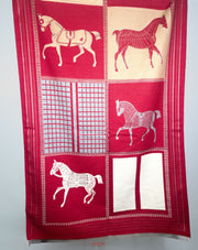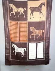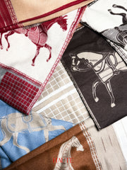 This oversized, ultra-soft scarf features a beautifully woven horse-inspired design, complete with classic saddle silhouettes and rich panel detailing. Its reversible jacquard weave offers depth, sophistication, and warmth—making it as stylish as it is cozy.
