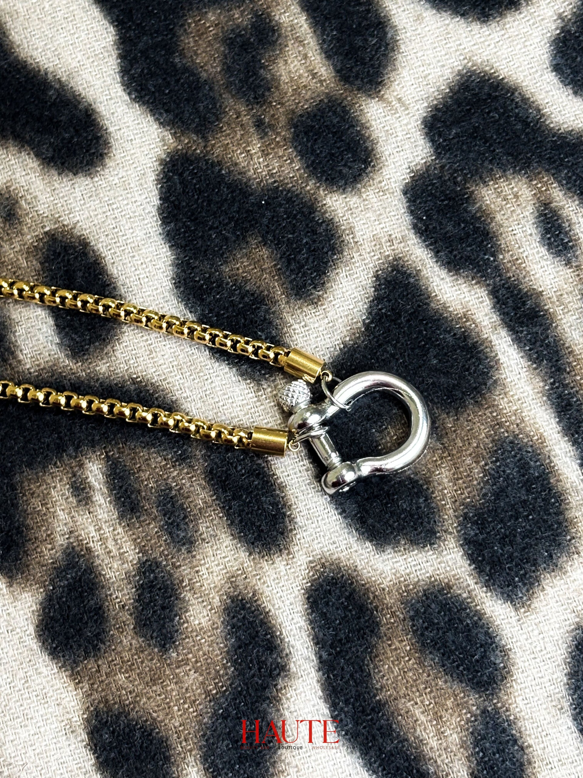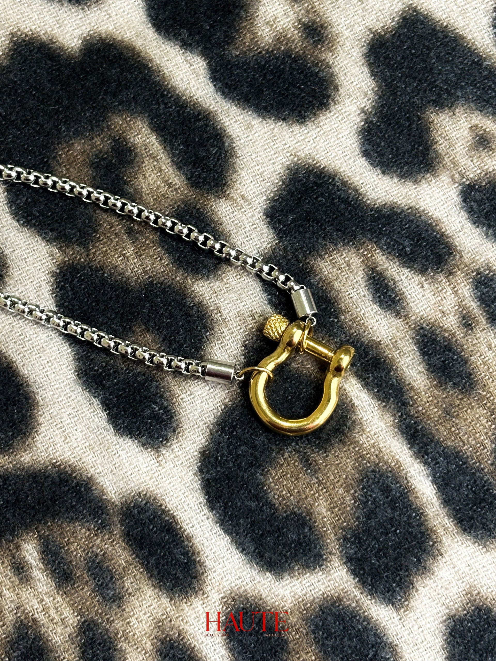 Sleek with a rebellious edge, the Bit of Trouble Necklace is your go-to statement piece when you want to mix bold and refined. Featuring a polished chain and a standout equestrian-style bit pendant, this necklace adds a modern industrial twist to any look. Wear it solo or layered—either way, it’s bound to stir up some stylish mischief.