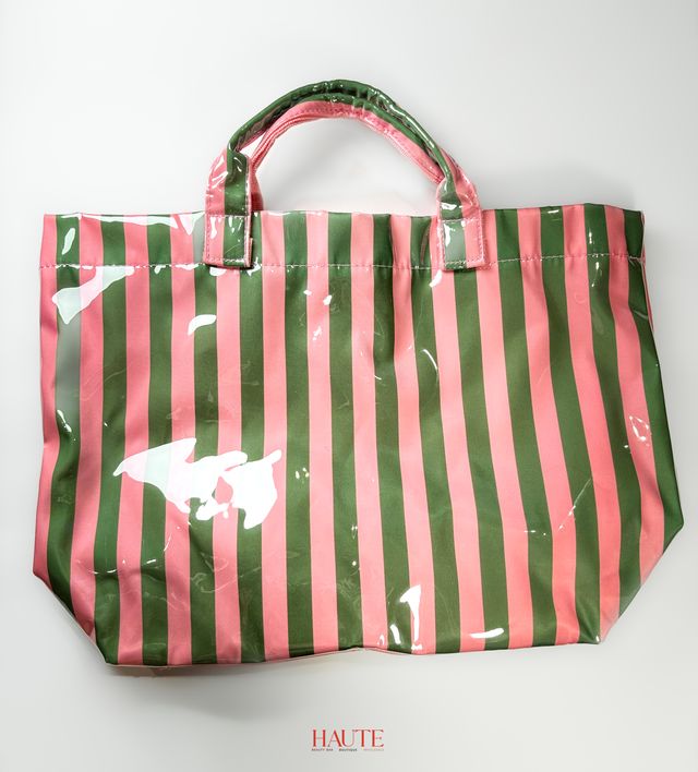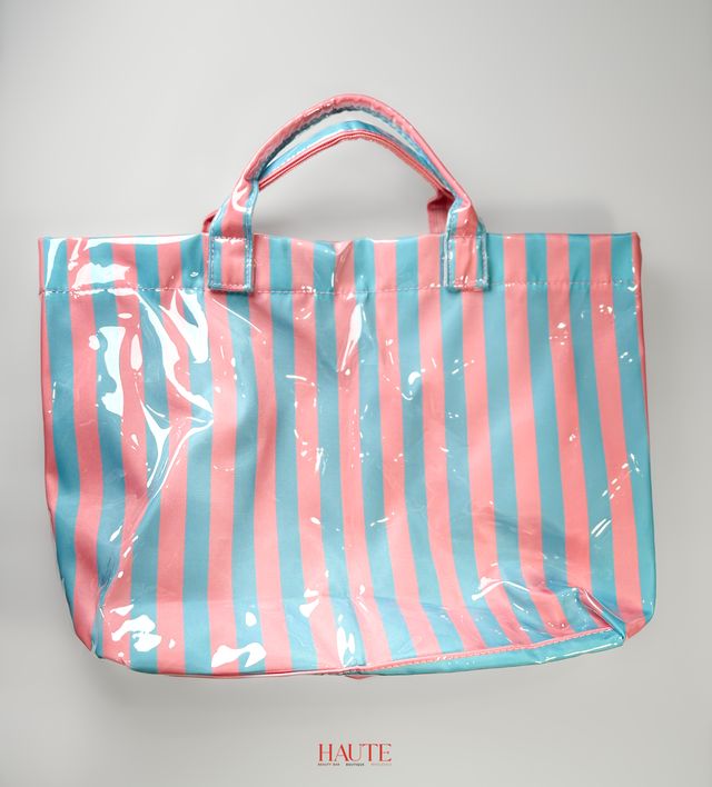 Bright, glossy, and full of personality, the Paloma Tote is made to stand out. Featuring vibrant vertical stripes and a smooth, wipe-clean finish, this tote is perfect for beach days, beauty errands, or sunny afternoons. Lightweight and roomy for all your everyday essentials.