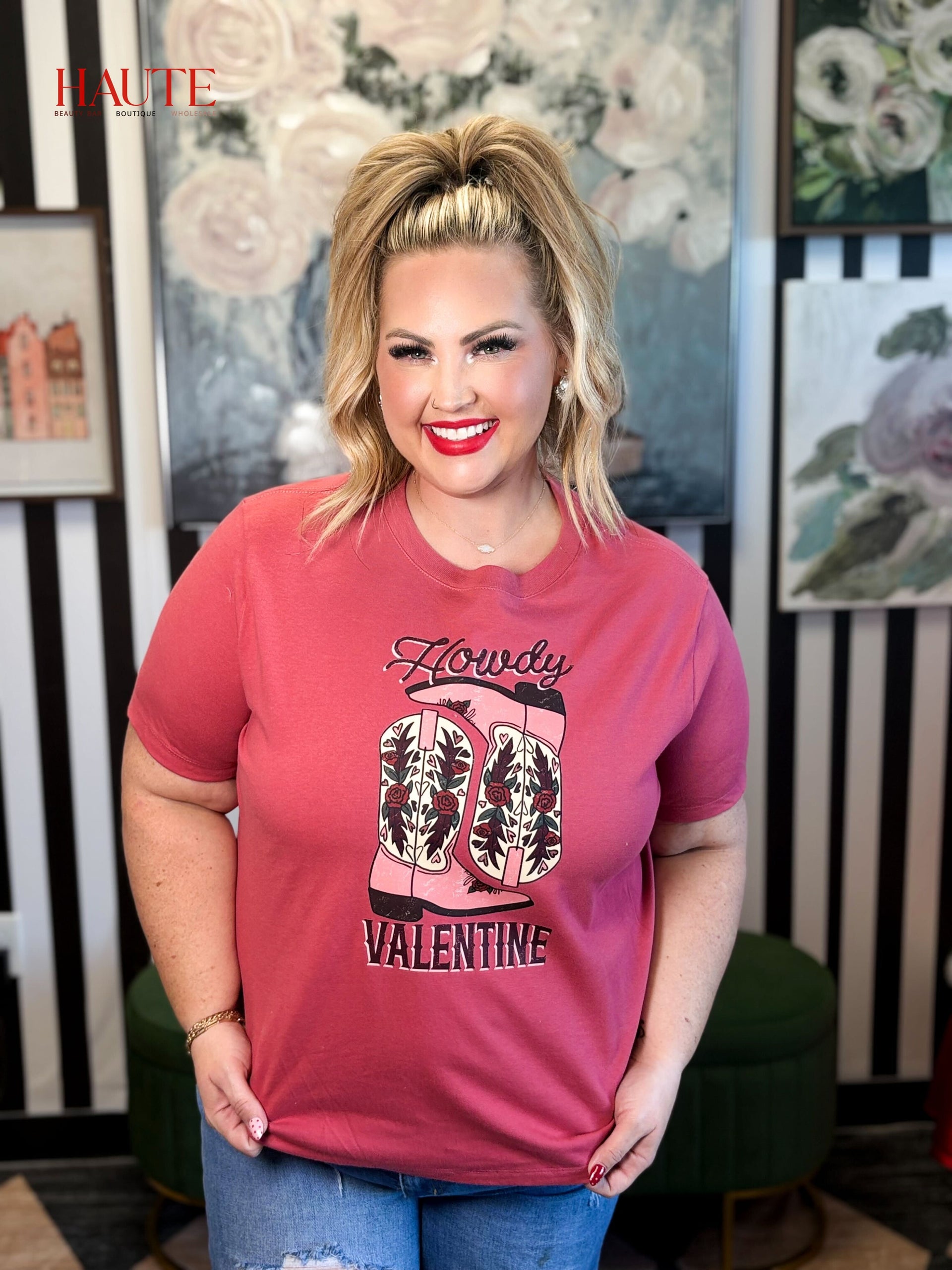 Say “howdy” to love with this playful and charming Howdy Valentine Tee! Featuring beautifully detailed western boots adorned with floral accents and bold vintage lettering, this tee blends country flair with sweet Valentine’s vibes. Printed on a soft red tee, it’s perfect for date nights, Galentine's get-togethers, or everyday festive wear. Comfortable, eye-catching, and full of personality—just like you!