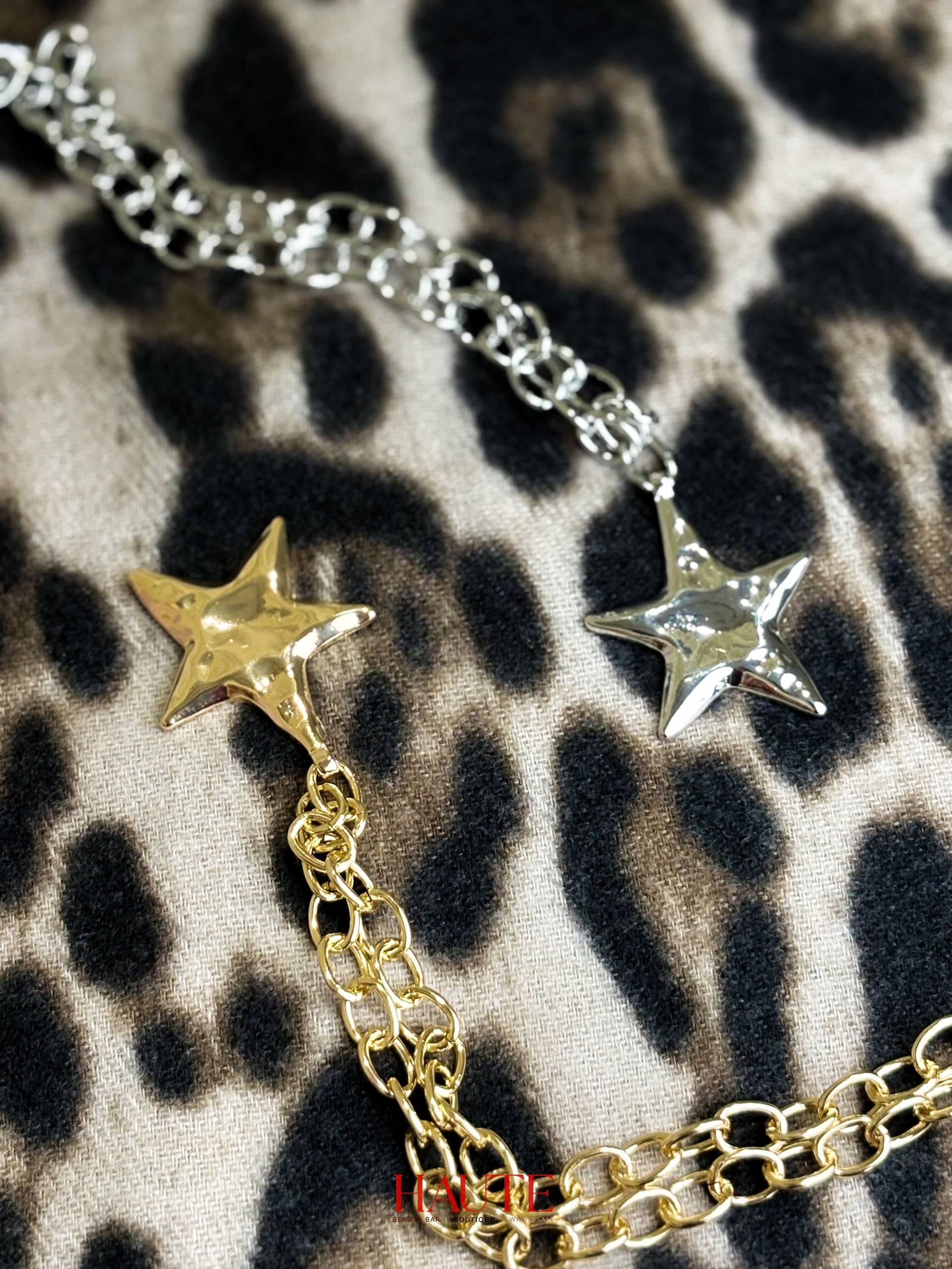 Shine bright in the Starstruck Statement Necklace, a bold and modern piece featuring a chunky chain and high-shine metallic star pendant. Available in both radiant gold and sleek silver, this necklace brings celestial glam to any outfit—perfect for holiday parties, NYE looks, or adding a little star power to your everyday style.