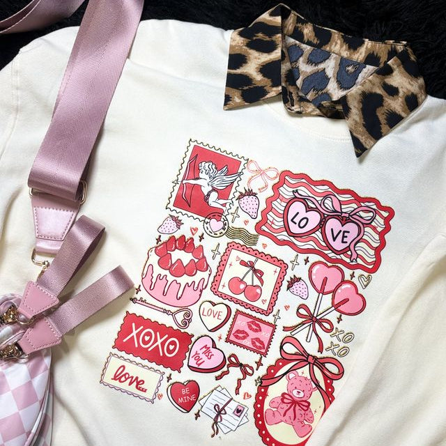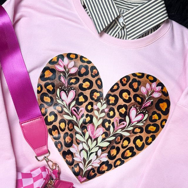 Love Notes Sweatshirt, Out-of-pocket Crossbody Bag in light pink & Haute Animal Print Collar in Leopard.