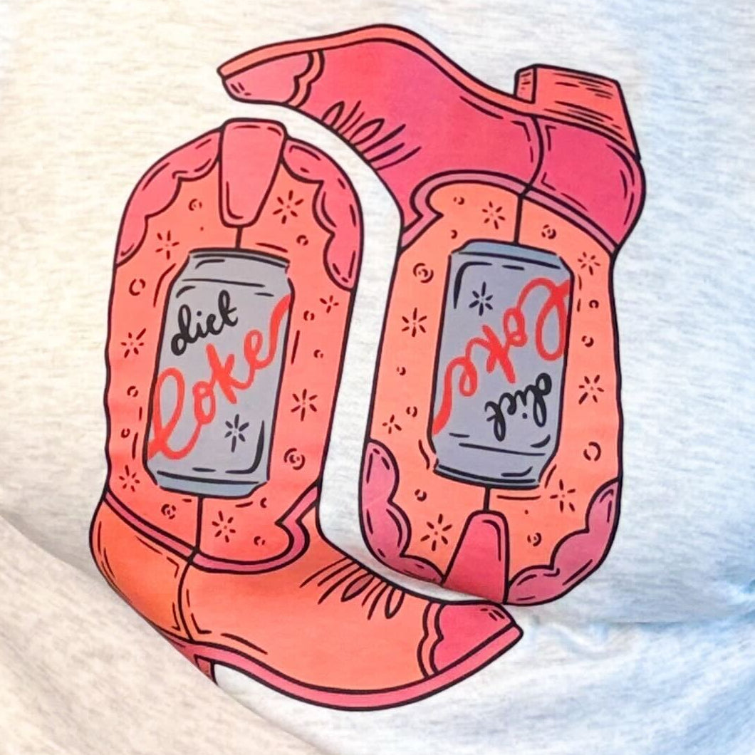Add a splash of sass to your next tee with the Diet Coke Boots Transfer! Featuring vibrant pink cowgirl boots clutching iconic Diet Coke cans, this playful DTF design is perfect for cola lovers and western queens alike. Pre-cut and press-ready, it's ideal for tees, sweatshirts, or tote bags. Just heat press and go—yee-haw meets fizz!