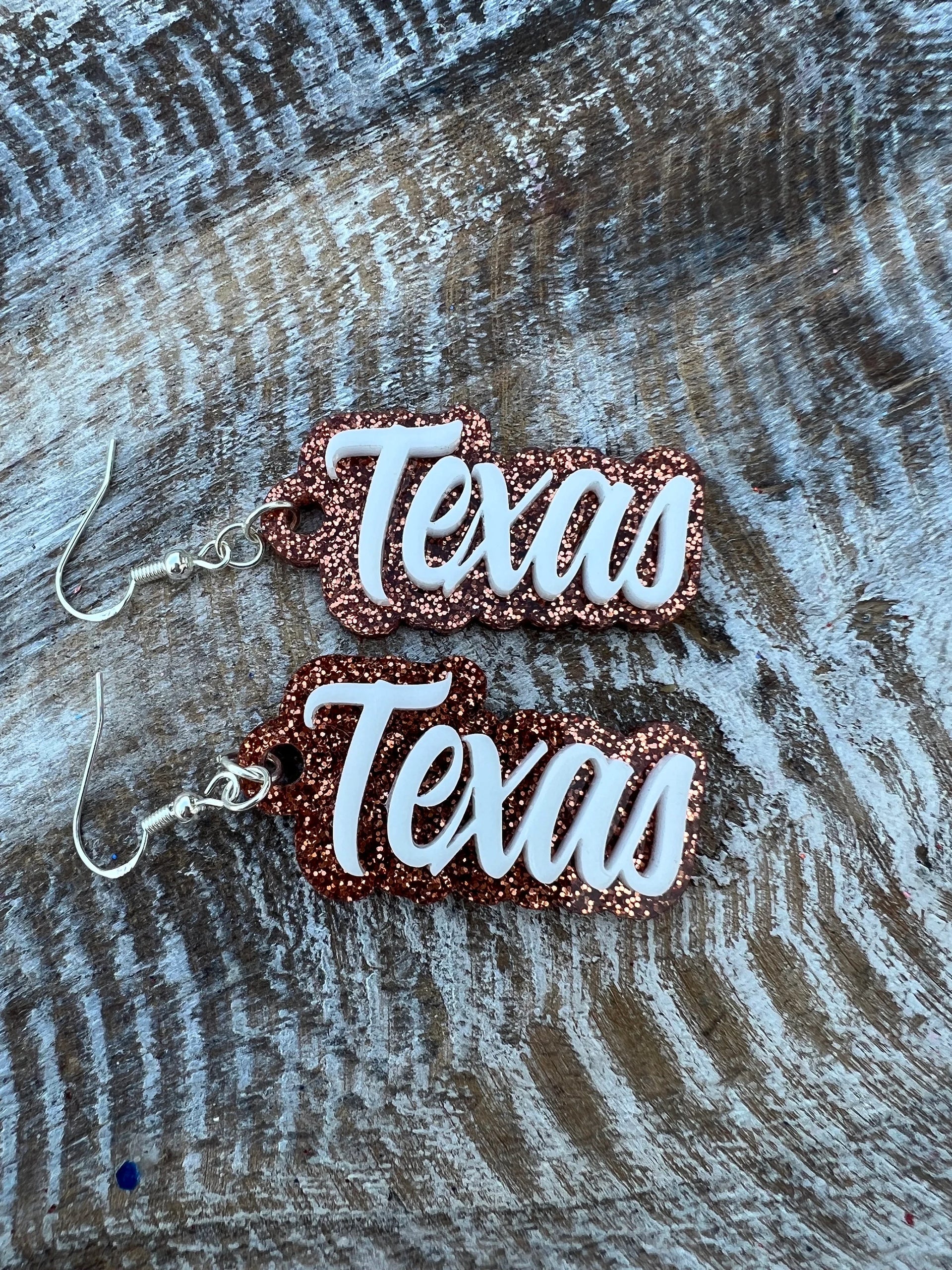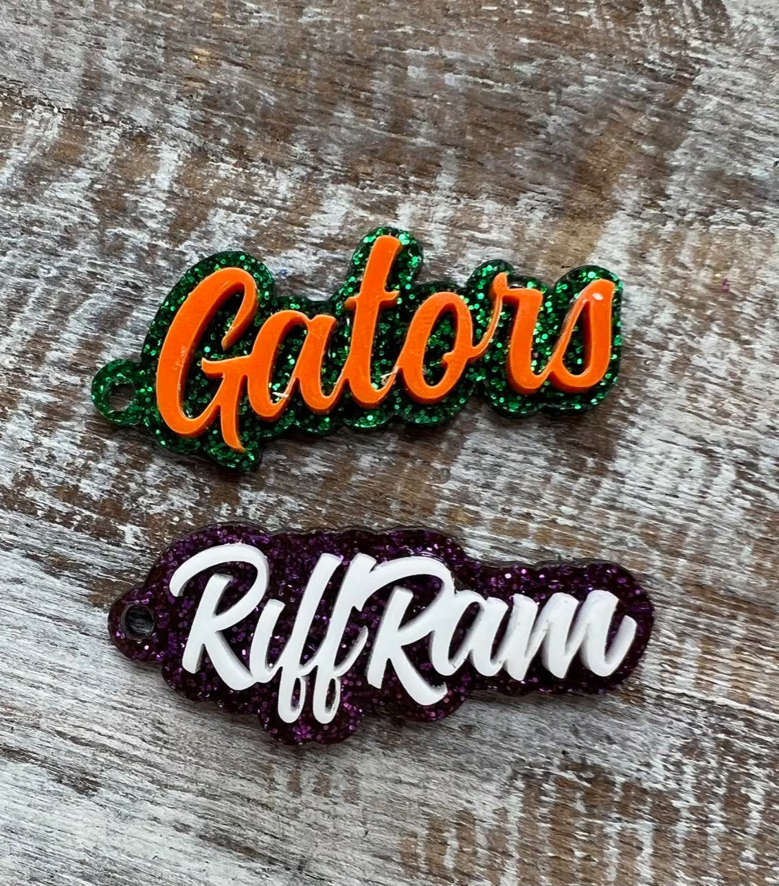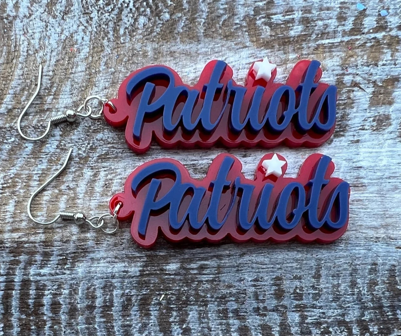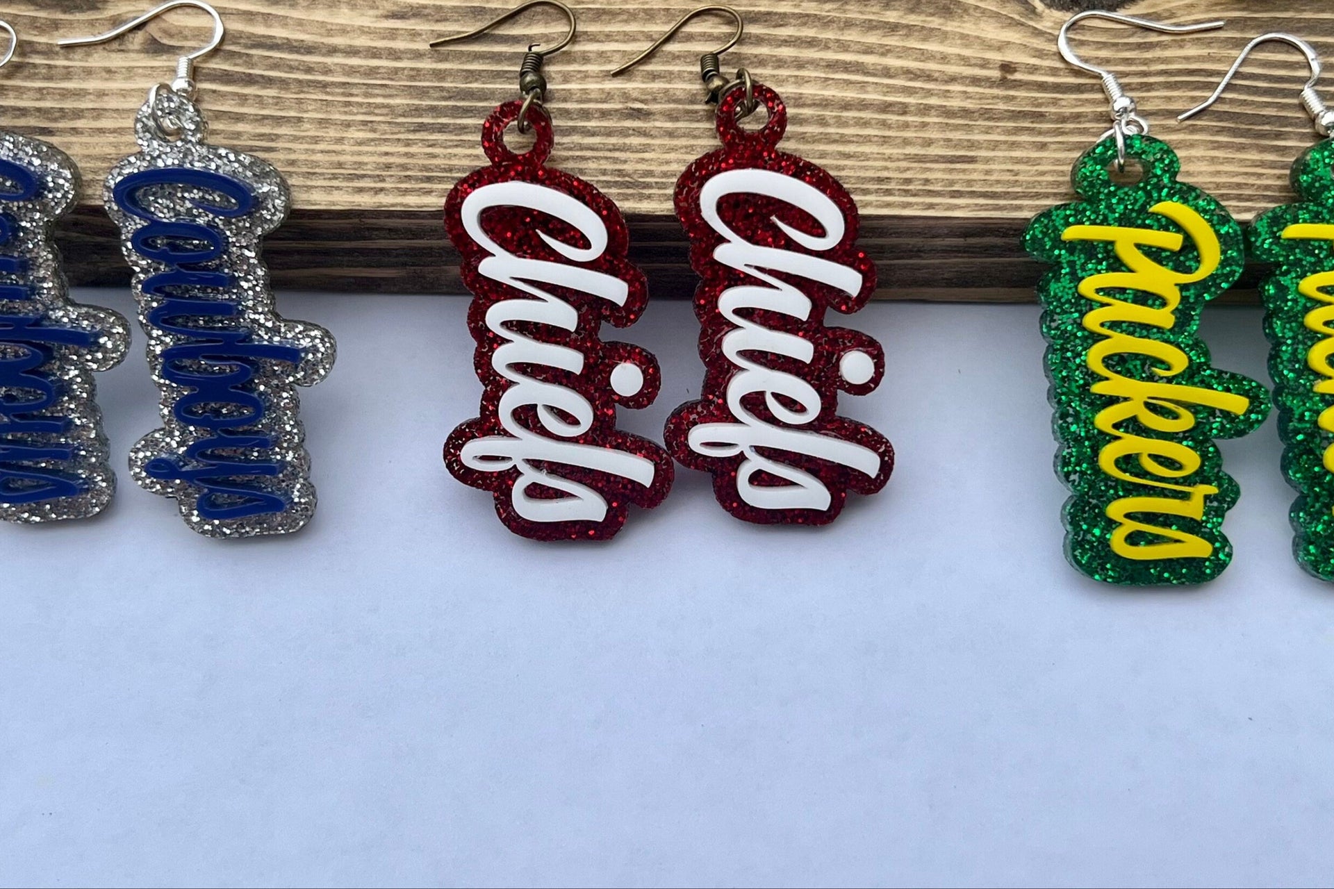 Customize these earrings with any color combo & team name or word. These are 2" long and 1" wide hung on hypoallergenic sterling silver hooks. Please email us at info@hautellc.com with customizations.