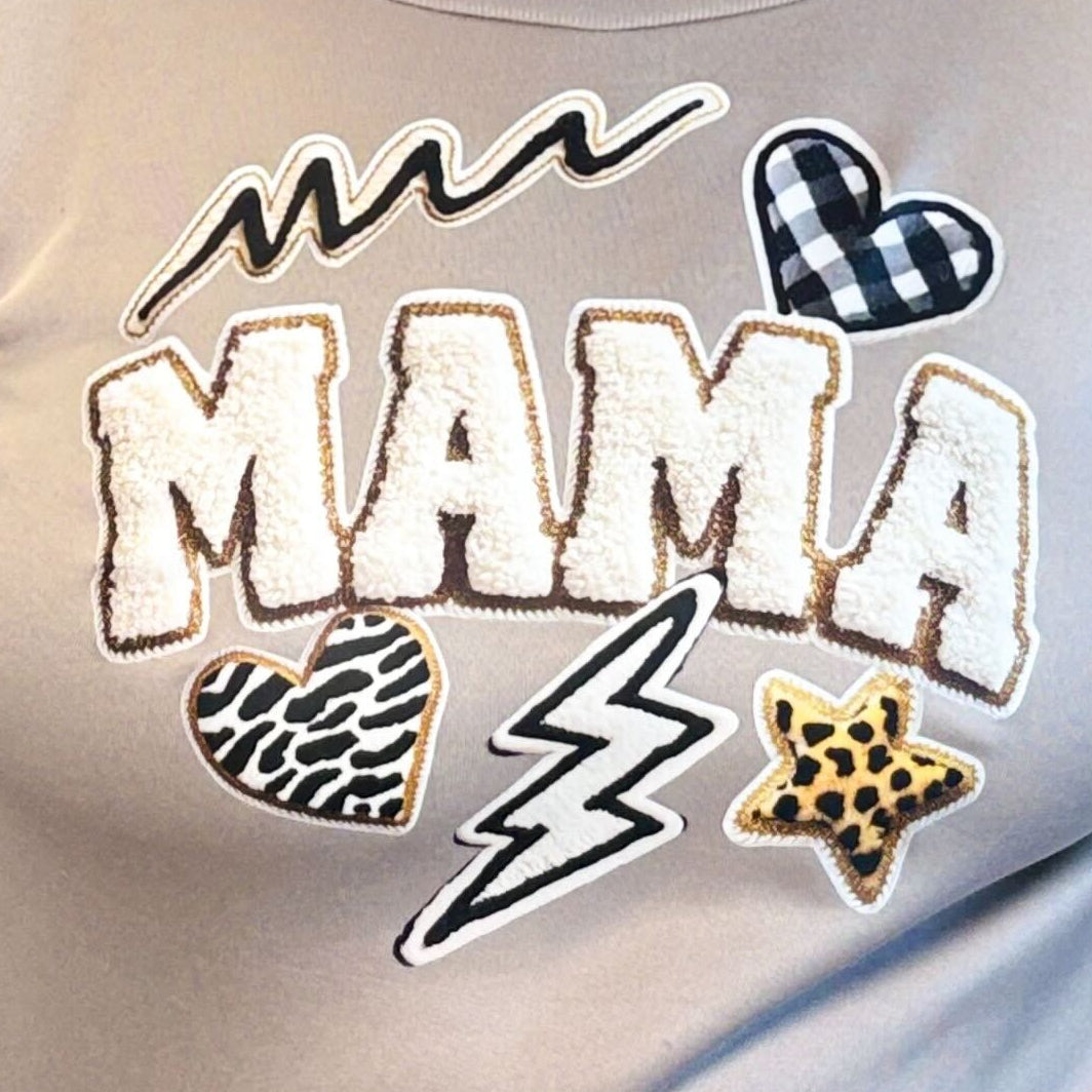 Bring bold mama energy to your creations with our Wild Mama DTF Transfer! This design features textured varsity-style "MAMA" lettering surrounded by playful accents like leopard and zebra print hearts, a lightning bolt, and fun graphic doodles. Perfect for neutral-toned garments or vibrant statements, it’s ideal for celebrating motherhood with style and sass. Pre-cut and ready to press!